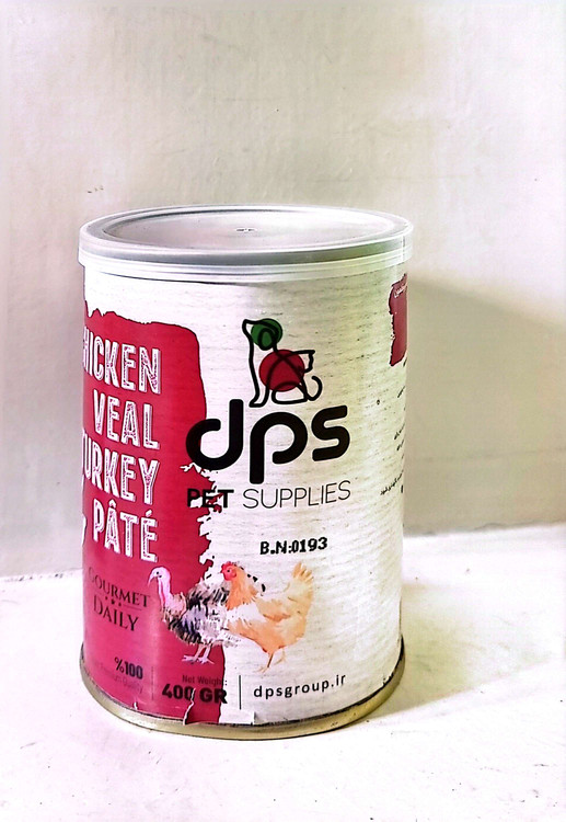کنسرو پته گوشت گوساله و بوقلمون و مرغ مخصوص گربه باِلغ دی پی اس