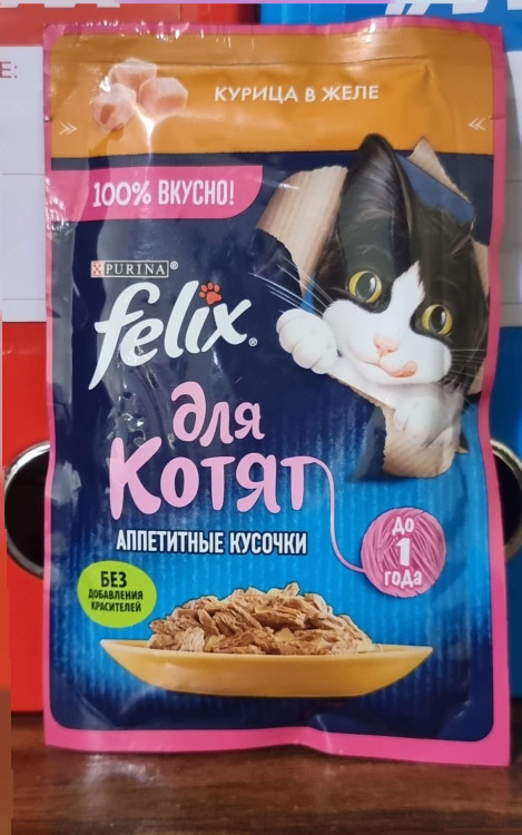 پوچ بچه گربه فلیکس باطعم مرغ در ژله ۷۵ گرمی